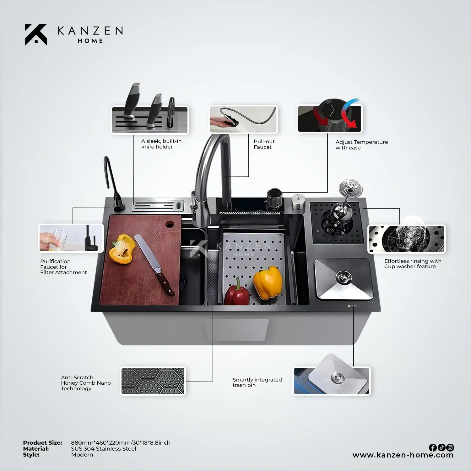Welcome to Kanzen Home, your premier destination for modern luxury home products. We offer a wide range of high-quality items for your kitchen and bathroom, meticulously selected to incorporate the latest advancements in technology. Our extensive product line includes state-of-the-art Smart Toilets, Smart Faucets, and Modern Bathroom Accessories designed to elevate your home's functionality and aesthetics. For your kitchen, we provide Modern Kitchen Sinks and Modern Kitchen Cabinet Accessories that blend style and efficiency seamlessly. We also prioritize your home security with our advanced Smart Locks, ensuring your home is safe and secure. At Kanzen Home, we pride ourselves on integrating innovative solutions powered by Japanese technology, thanks to our esteemed Japanese technology partners who supply us with premium Japan-made parts. Our products are manufactured by industry experts with over 20 years of experience and are certified to meet international safety standards. This ensures that every product you receive from us embodies the perfect blend of luxury, technology, and safety. Experience unparalleled sophistication and modernity in your home with Kanzen Home's advanced home products. Why Choose Us? At Kanzen Home, we deliver unmatched quality and innovative solutions tailored to your unique needs. Our expert team ensures every product meets the highest standards of craftsmanship and durability. With exceptional customer service, trusted brand partnerships, and a commitment to sustainable practices, we provide a seamless and reliable experience from consultation to installation. Mission To enhance the lives of our customers by delivering innovative, high- quality home solutions that combine modern technology, functionality, and stylish design. At Kanzen Home, we are committed to excellence in every detail, ensuring that our products not only meet but exceed expectations of comfort, security, and efficiency for every household. Vision To become a leading provider of smart, functional, and stylish home solutions in Southeast Asia, recognized for our dedication to innovation, customer satisfaction, and sustainable practices. We envision Kanzen Home as a household name synonymous with quality, functionality, and the modern lifestyle. Our Certifications All Kanzen Home products are equipped with international certifications, ensuring their quality and safety. These certifications validate that our products meet rigorous global standards, providing our customers with peace of mind and confidence in their purchase. Our manufacturers, with over 20 years of industry experience, exemplify our commitment to excellence and adherence to international safety protocols. This reflects our dedication to delivering superior products that enhance the well-being and satisfaction of our clients. SHOWROOM LOCATIONS KANZEN HOME BALIUAG 140 DRT Highway, Baliuag, Bulacan (Infront of Wilcon) (044) 492 7277 / +63 962 192 9589 OPERATING HOURS: Monday to Sunday 8:00 AM to 7:00 PM KANZEN HOME CAVITE MG Center, Governors Drive, Langkaan II, Dasmarinas, Cavite +63 961 941 8114 OPERATING HOURS: Monday to Sunday 8:00 AM to 7:00 PM EMAIL: sales@kanzen-home.com