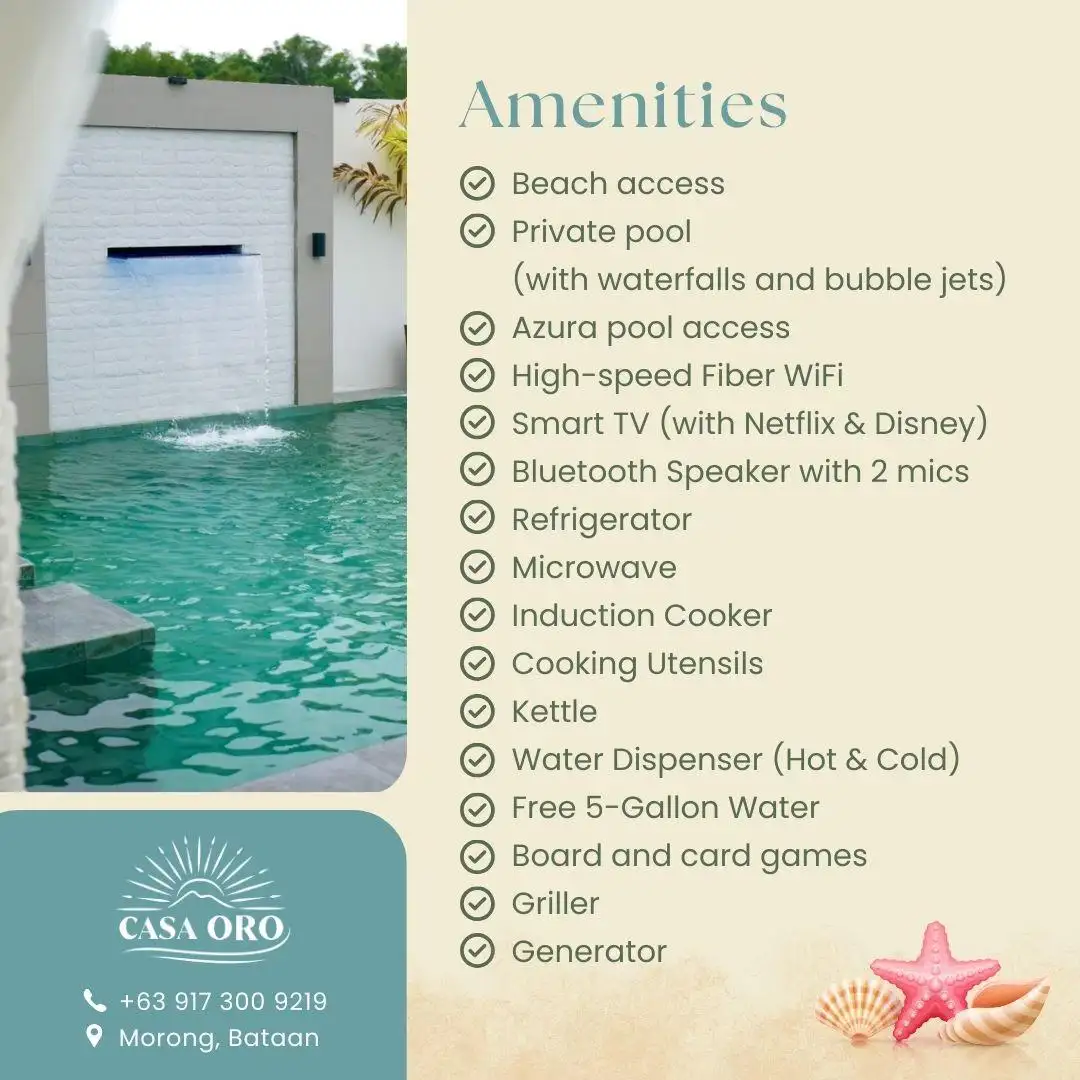 Cozy, sunlit home within the vicinity of fine sand beach of Morong, Bataan 🌴 Dive into vacation mode! Whether you’re lounging by the pool, chilling at the beach, or enjoying our cozy spaces and fun entertainment, we’ve got everything you need to relax and recharge. 🏖️