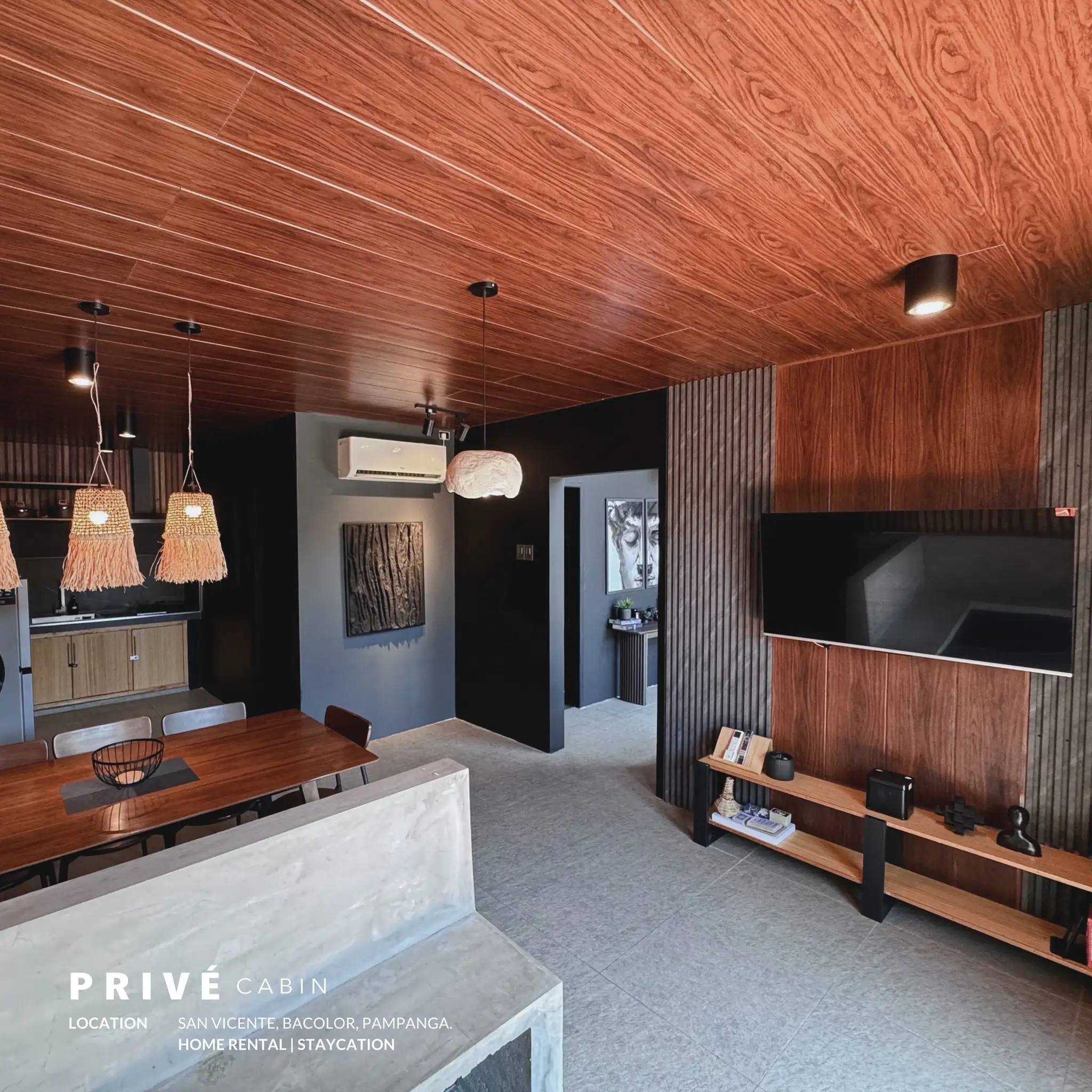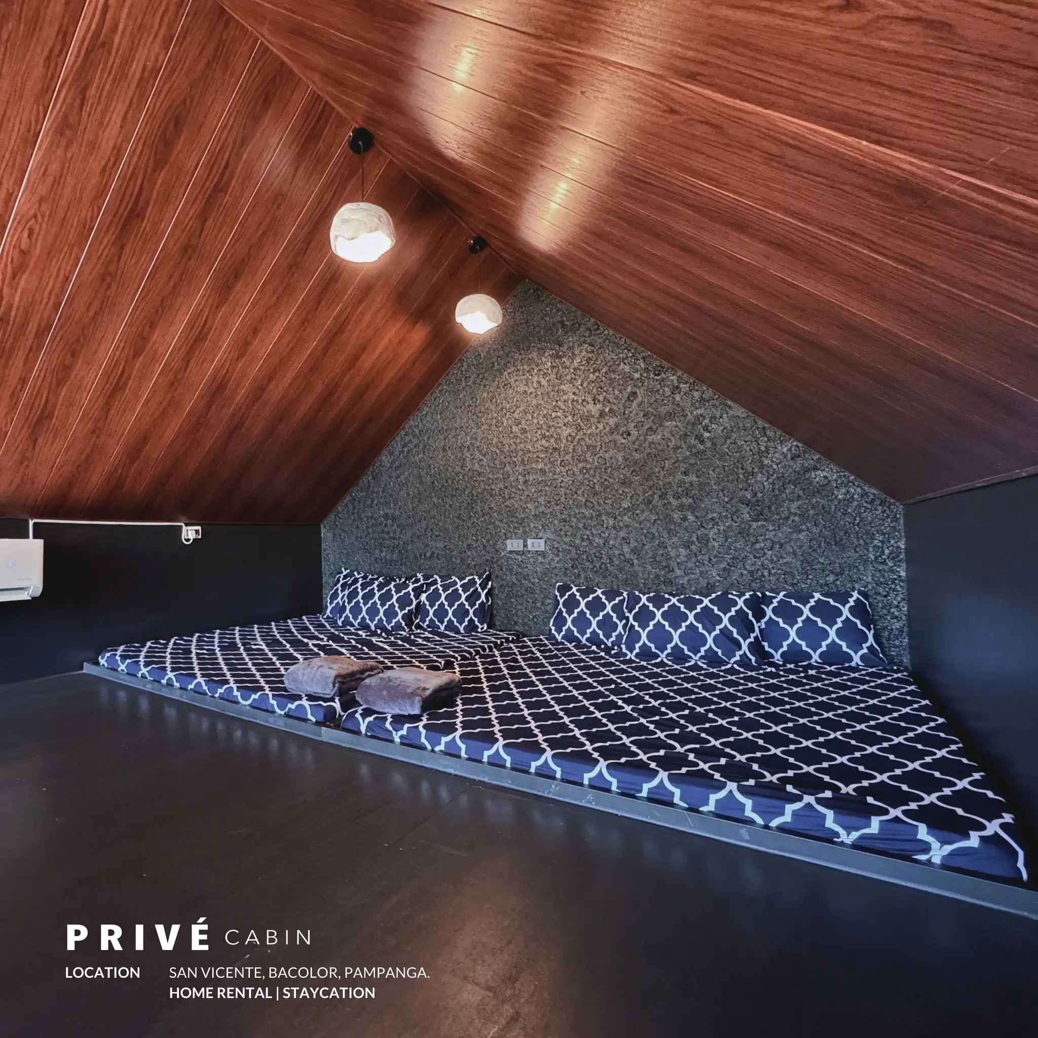 Discover the charm of Privé Cabin, your exclusive private resort escape. Step into our cozy cabin designed with a blend of rustic warmth and modern comfort. Featuring spacious king-size beds, soft interiors, and inviting spaces, every corner is thoughtfully made to make you feel right at home. The atmosphere carries a perfect balance of relaxation and togetherness, giving you a place where time slows down and memories linger. Whether you’re spending quality time with family or creating fun moments with friends, our cabin offers the ideal setting for laughter, bonding, and unforgettable experiences. Surrounded by a refreshing vibe and charming details, it’s more than just a stay, it’s your home away from home, where comfort meets style and every moment feels special. Unwind, Explore, and Create Lasting Memories At Privé Cabin, it’s not just about the stay—it’s about the experience. Enjoy wide-open spaces perfect for gatherings, cozy nooks for quiet moments, and modern amenities designed for both relaxation and fun. Whether you’re cooking up a feast, sharing stories by the lounge, or simply soaking in the peaceful surroundings, every detail is crafted to make your getaway effortless and memorable. Here, you’ll find the perfect blend of comfort, privacy, and charm, giving you the freedom to slow down, reconnect, and enjoy the company of the people who matter most. Looking Ahead with Privé Cabin Privé Cabin is more than just a private resort, it’s a growing dream. With the love and support of our valued guests, we’re excited to share that expansion is on the horizon. Soon, we’ll be creating new modern cabins designed to offer fresh experiences, while keeping the same warmth, comfort, and charm that make Privé Cabin feel like home. Each stay you share with us helps bring this vision to life. Together, we’re building not only more spaces to relax and connect, but also a destination that inspires others to slow down, embrace nature, and cherish meaningful moments. Privé Cabin will continue to grow, not just in size, but in the stories and memories we create with you. THESE ARE THE AMENITIES THAT YOU CAN USE IN OUR CABIN PRIVATE POOL ● FULLY AIR-CONDITIONED CABIN ● FREE USE OF GRILLER ● FREE WIFI AND NETFLIX ● FREE USE OF BOARD GAMES ( COLOR GAME, DECK OF CARDS, BINGO, DOS, UNO ) ● KARAOKE ● FREE USE OF REFRIGERATOR, MICROWAVE, ELECTRIC KETTLE, KITCHEN UTENSILS AND RICE COOKER ● 1 GALLON MINERAL WATER ● 2 TABLES AND 8 CHAIRS ● 1 ROOM 4 BEDS ( 2 KING SIZE BEDS AND 2 QUEEN SIZE BEDS ) ● 6 QUEEN SIZE BLANKETS ● LOFT ( 2 KING SIZE BEDS ) ● TOILET AND BATH INSIDE CABIN ● OUTDOOR SHOWER ● 24/7 CCTV MONITORING OUTSIDE THE CABIN